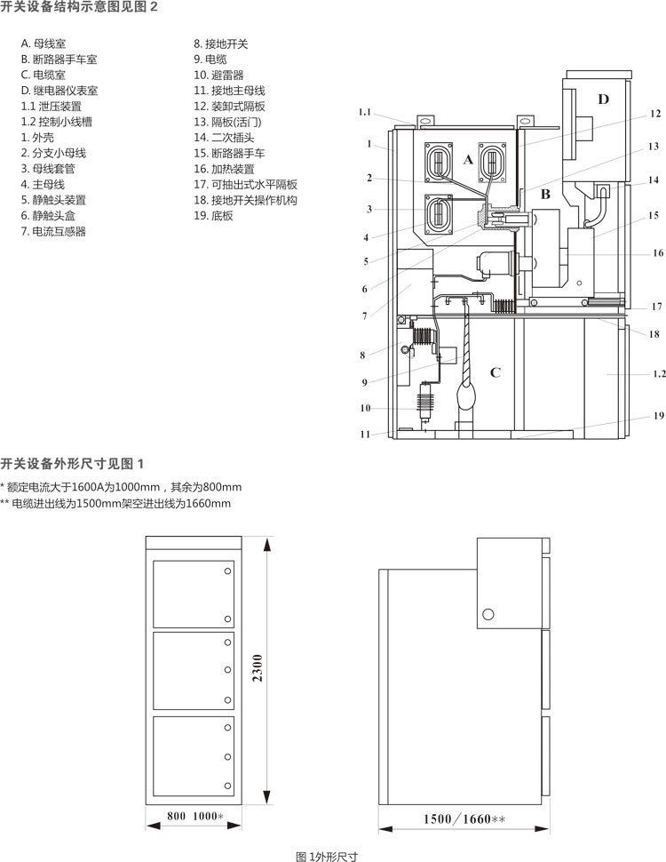 案,经排列、组合后能成为各种方案形式的配电装置。本开关设备可以从正面进行安装调试和维护,因此它可以背靠背组成双重排列和靠墙安装,提高开关设备的安全性、灵活性,减少了占地面积。