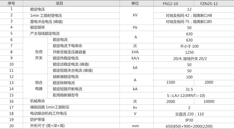 ◎ 既可配电FN12-10型压气式负荷开关、组合电器,也可配FZN25-12型真空负荷开关、组合电器,且安装尺寸完全一致。体积小,免维修,三相联动结构,具有明显的隔离断口。
